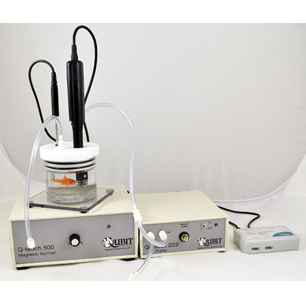 用途:Q-teach AQUA水生生物呼吸代谢测量系统专为教授小型水生生物(如鱼类、软体动物和其他水生无脊椎动物)的呼吸作用原理而设计。该套件以光学溶解氧(DO)探头测量溶解氧的变化为基础。将水生动物置于装有充氧水的聚碳酸酯容器中。容器底部有一个搅拌棒,置于磁力搅拌器上以确保水充分混合。溶解氧探头测量动物呼吸时溶解氧的变化率。当溶解氧水平下降时,用户可以打开连接到容器气体输入口的气泵,为水充氧。该套件还包含一个温度探头,在测量过程中也置于水中。随套件提供的软件可收集数据,并提供用于计算动物代谢活动的分析功能。